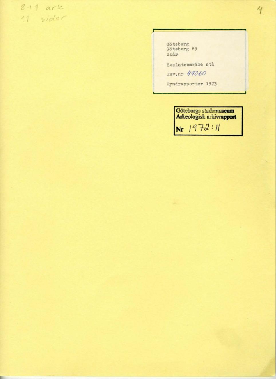 arkeologisk arkivrapport, arkeologisk rapport, rapport, Arkeologisk rapport, Göteborg 69 Skår, Boplatsområde stenålder, 22:S 18