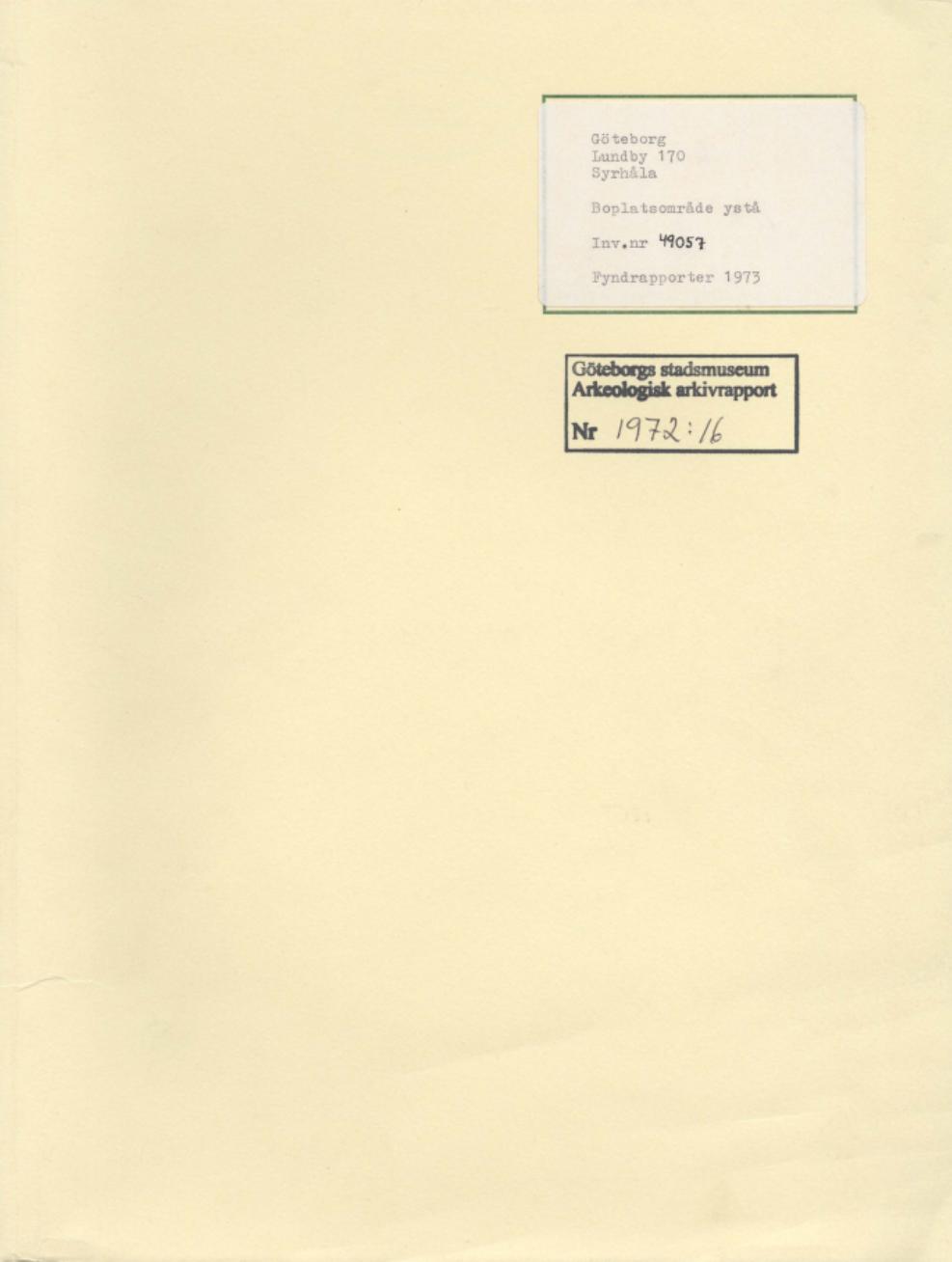 • Arkeologisk rapport 1972:16