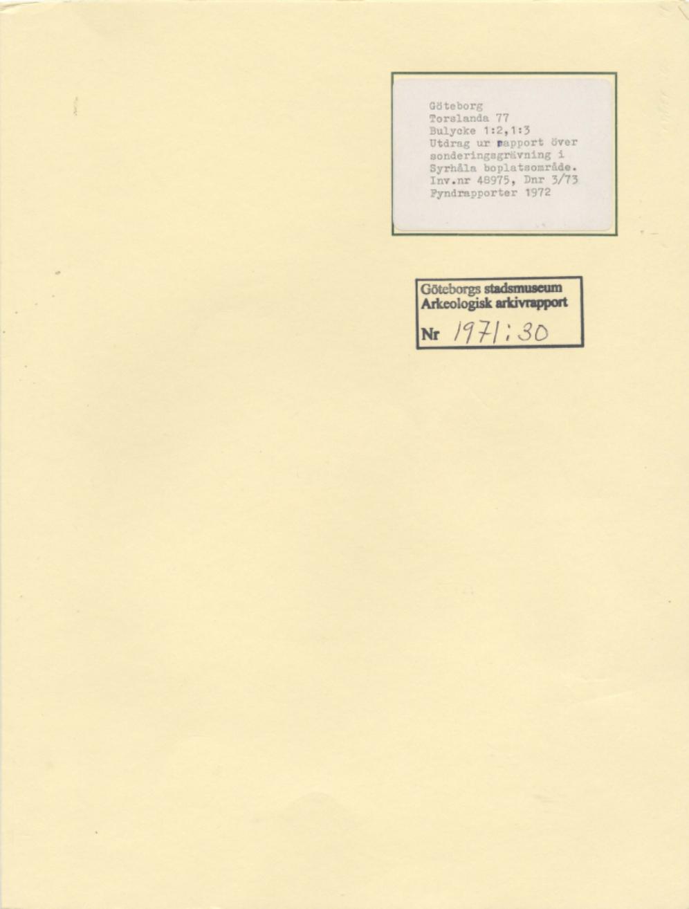 rapport, arkeologisk arkivrapport, arkeologisk rapport, Arkeologisk rapport, Boplatsområde sonderingsgrävning, Syrhåla Göteborg