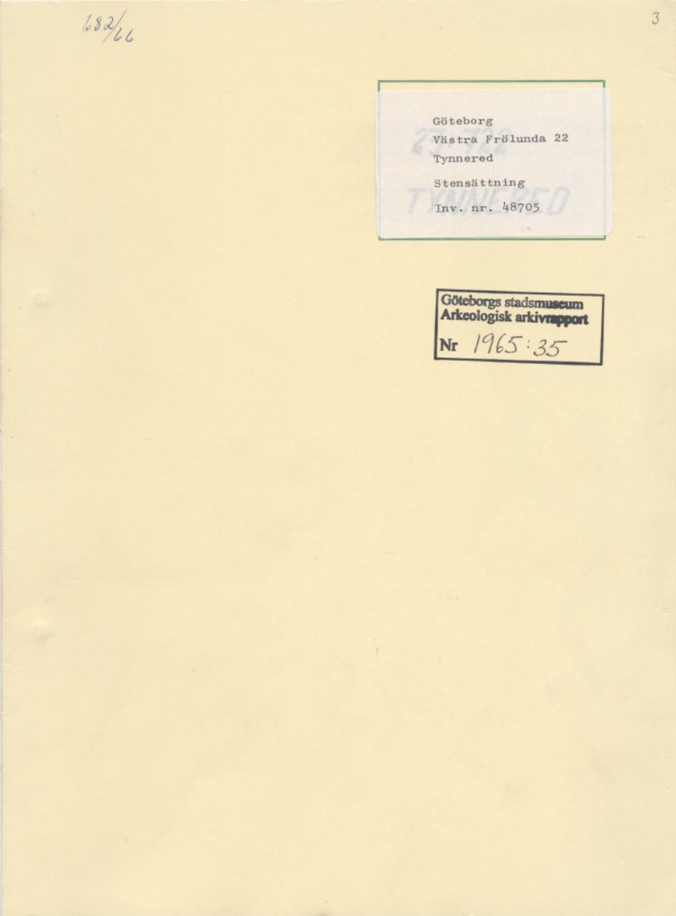 arkeologisk arkivrapport, rapport, arkeologisk rapport, inom Göteborgs stad, Arkeologisk rapport, Rapport över undersökning av fornminnesinventeringens nr 23:722