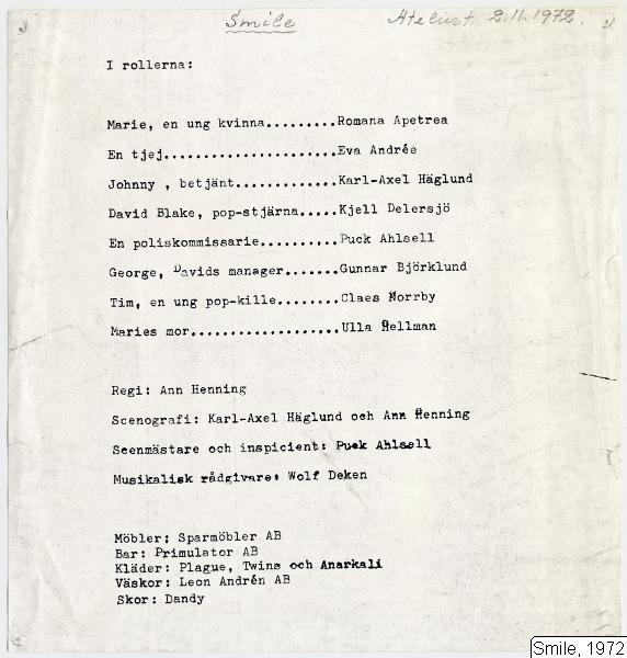 • Tillverkades 1972-11-02 - i Atelierteatern.