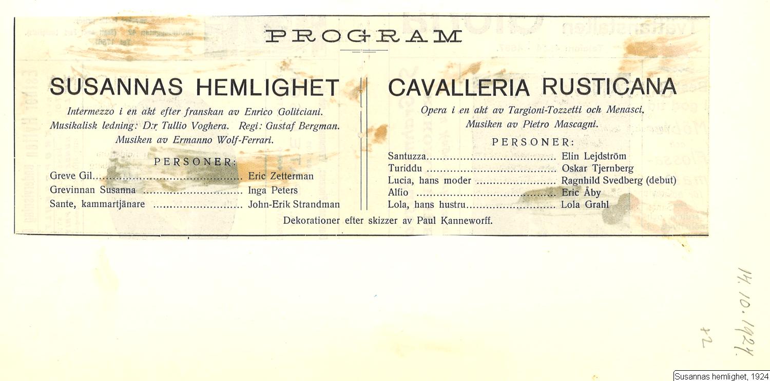 Tillverkades 1924-10-14 - i Stora Teatern.