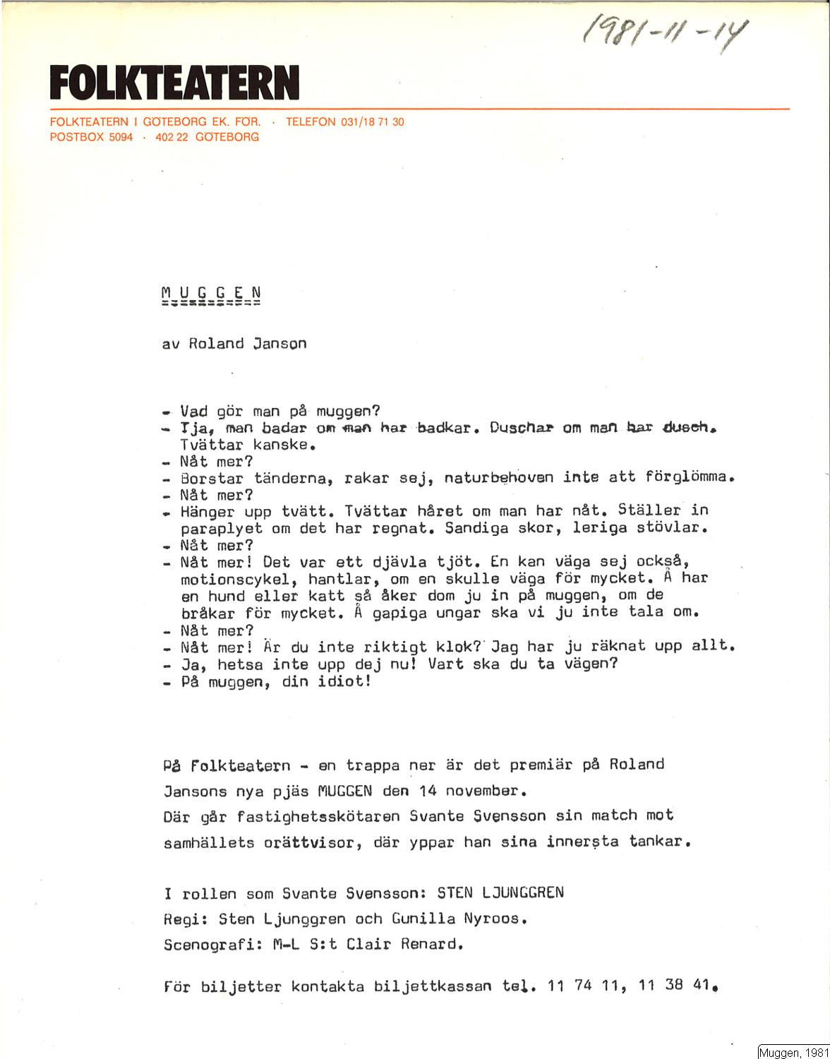 • Tillverkades 1981-11-14 - i Folktatern, en trappa ner.