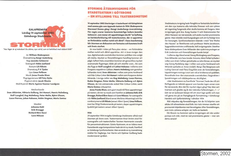 Tillverkades 2002-09-14 - i Göteborgs stadsteater.