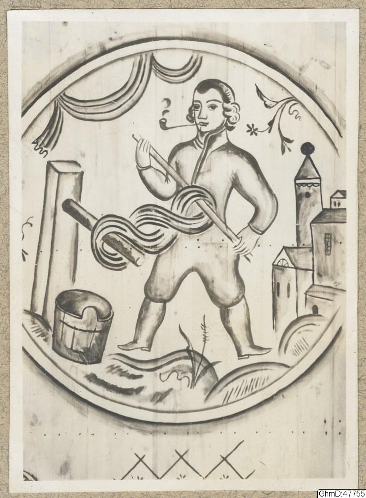 "I detta rum utställas redskap, fotografier och halvfabrikat, som avse att ge en inblick i metoderna inom den för Västsverige sedan gamla tider betydelsefulla textila hemslöjden. Då textiltillverkning såsom hantverk längesedan upphört att idkas i städerna, måste man söka de ålderdomliga metoderna på landsbygden, där de fortfarande uppehållits. De skilda specialiteter i fråga om vävnader, som olika bygder ägt, kunna delvis även spåras i de använda redskapen.