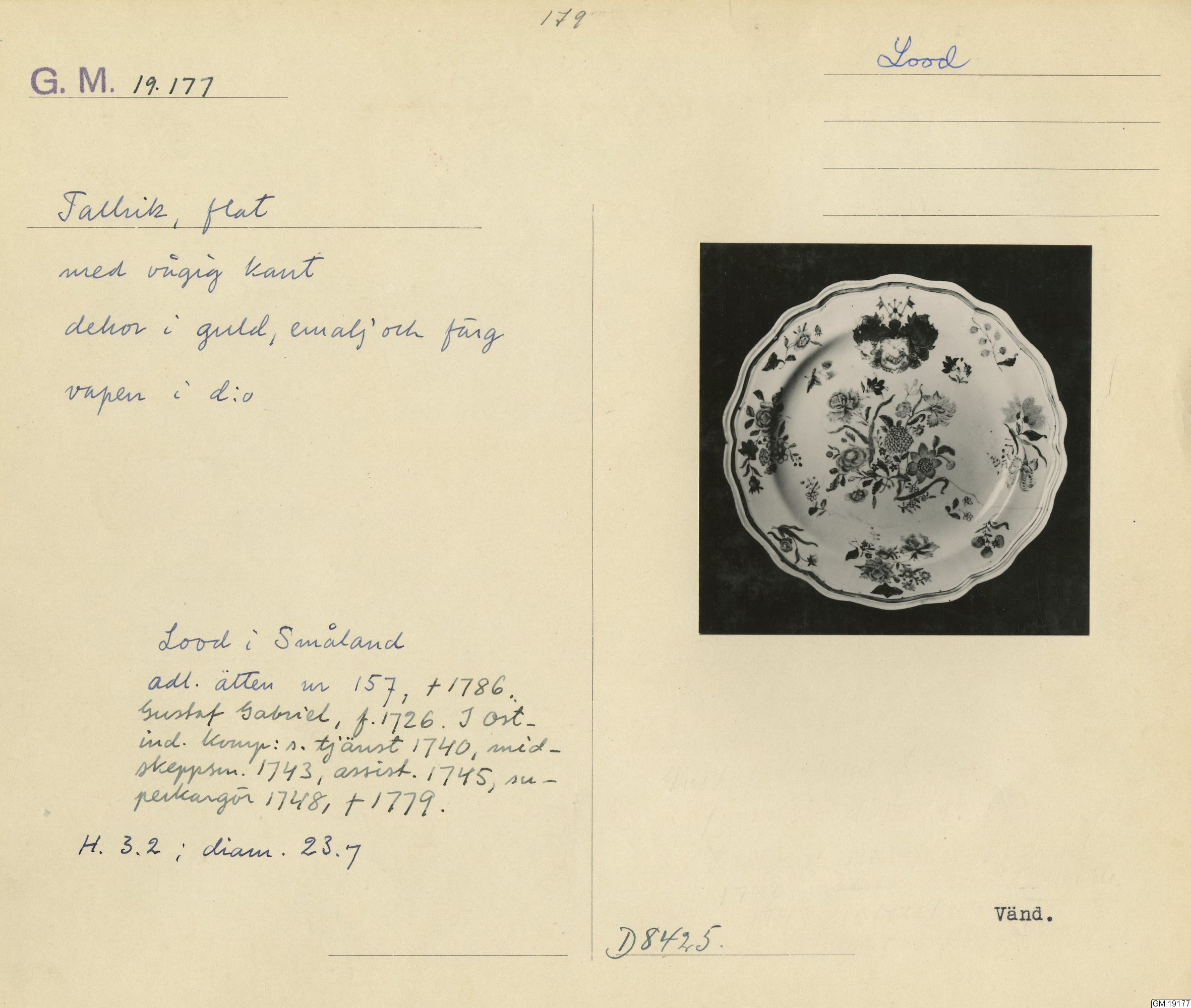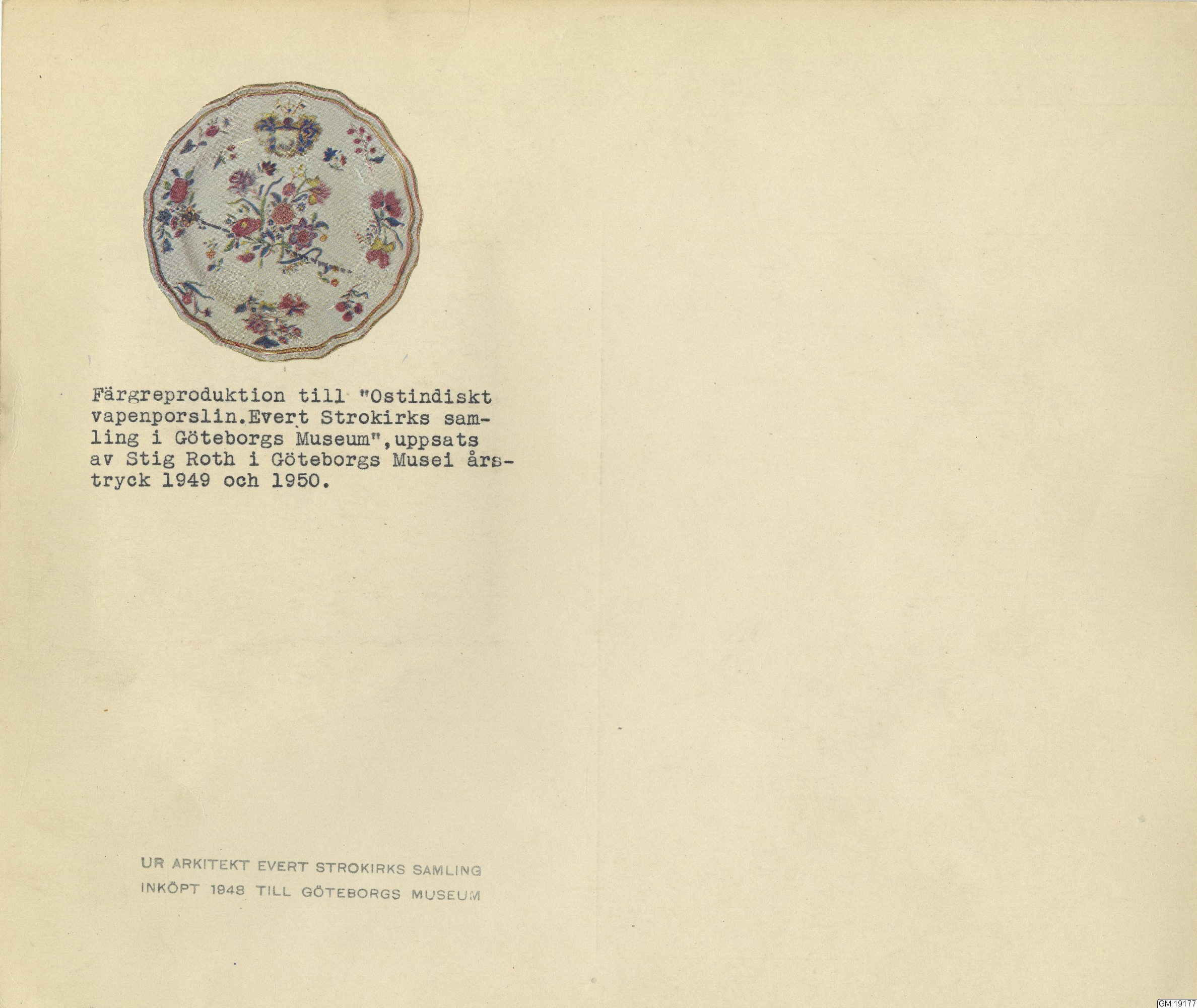 Ur Evert Strokirks samling GM 19122-19 347 utgör en samling ostindiskt porslin, försedd med olika svenska adelsfamiljers vapen och förvärvad i ett sammanhang.Samlingen hopbragt av arkitekten Evert Strokirk, Stockholm f: 4/3 1861 d: 29/10 1936.