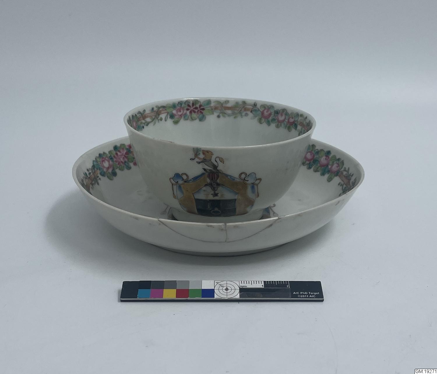tekopp med fat, te