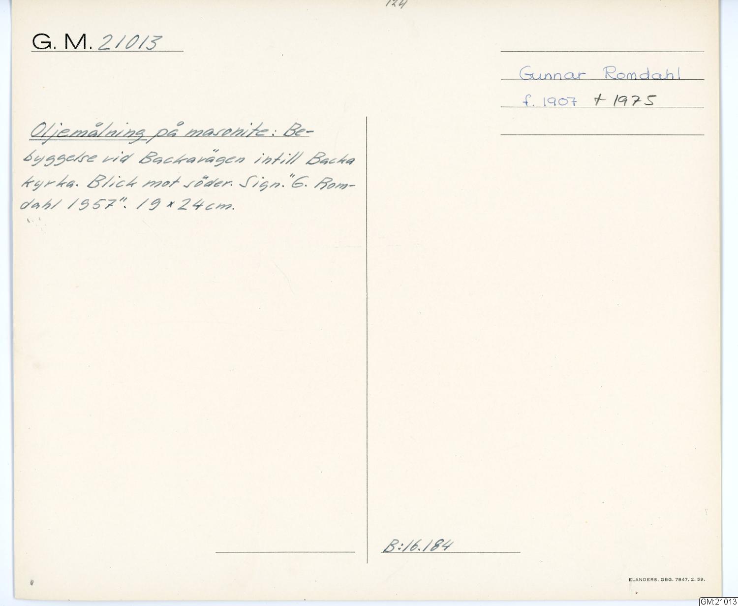• Skapad av Romdahl, Gunnar, 1907-1975.