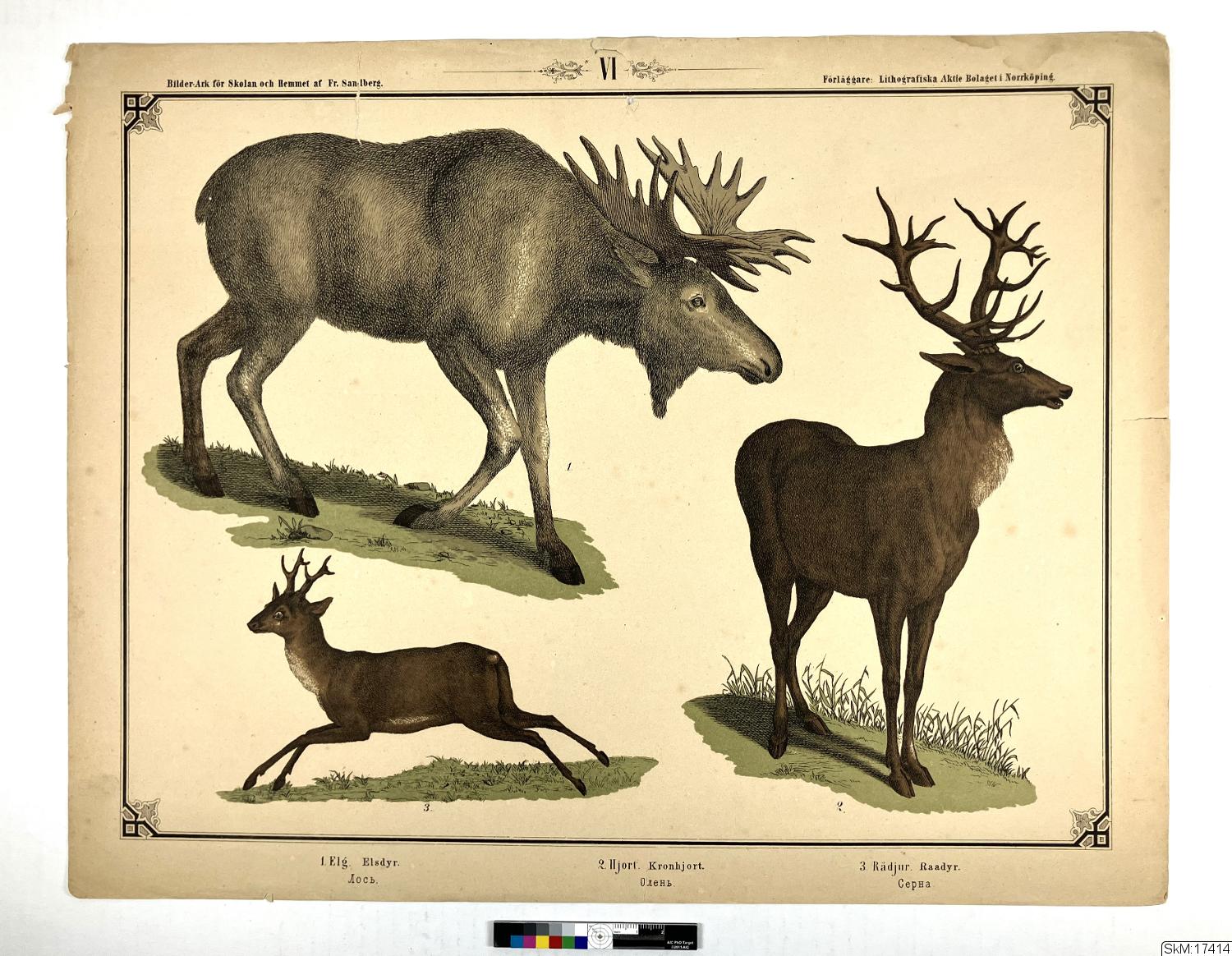 skolplansch, bilder, VI. Elg, hjort och rådjur, Bilderark för skolan och hemmet