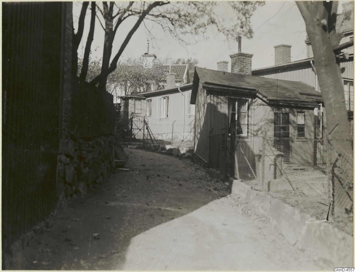 • Krokstigen, sett från Gråbergsgatan, närmast till höger Majornas 1 rote, 107 C, Gråbergsgatan 37. I bildens mitt skymtar Majornas 1 rote, nr 202 CL.