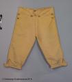 Tredelad dräk,t skjorta av vitt bomullstyg med röda broderier på manschetter krage och halssprund, knäbyxa i sämskskinsgult mollskinn( säskild tygkvalite som ska likna sämsskinn)knäpps med mässingsknappar och har spännen vid knäna, väst med mörkblå rygg och röda framstycken, fransar på kragen samt mössingsknappar. Bygdedräkt uppsydd till någon av Blanche Bondes söner. Det går inte att avgöra vilk...