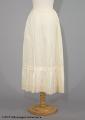 Från katalogkort: Underkjol av tunn vit bomull. Fotsid, sydd i sex våder. Nedtill rynkad kant i brodyr. Längd: 88 cm, vidd: 244 cm.