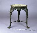 • ett bord och tre taburetter, ursprungligen grönmålad; färgrester på undersidor