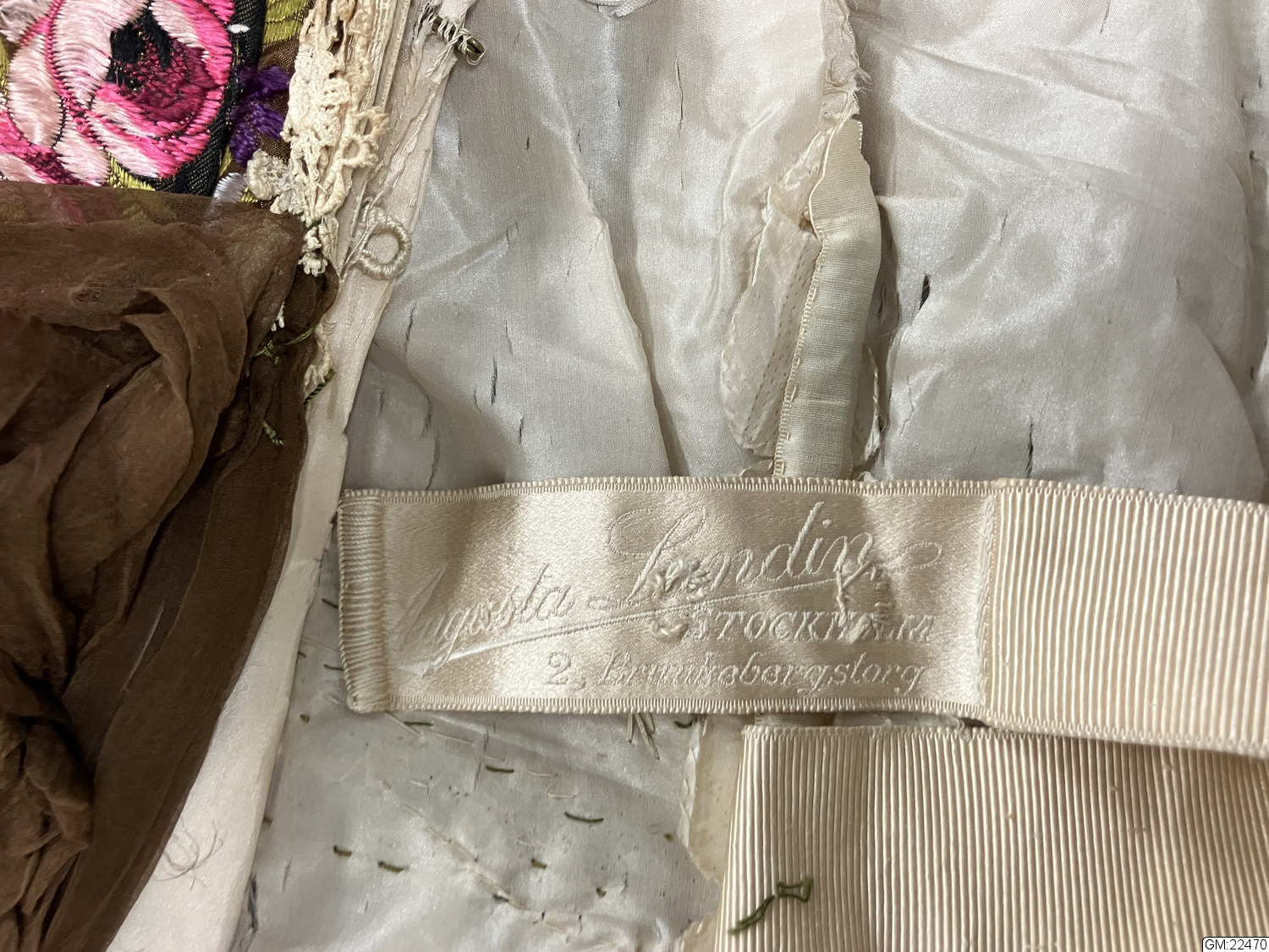 Tillverkad 1910-11 av Augusta Lundins Ateljé och Modemagasin.