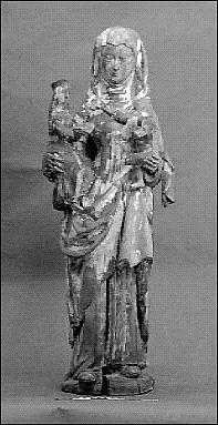 • Skulpturen "Anna själv tredje" framställer Anna, Marias moder,stående iklädd en fotsid underklädnad och en urringad överklädnad draperad och lagd i veck upp över vänster arm. Hon bär den gifta kvinnan... Visa hela