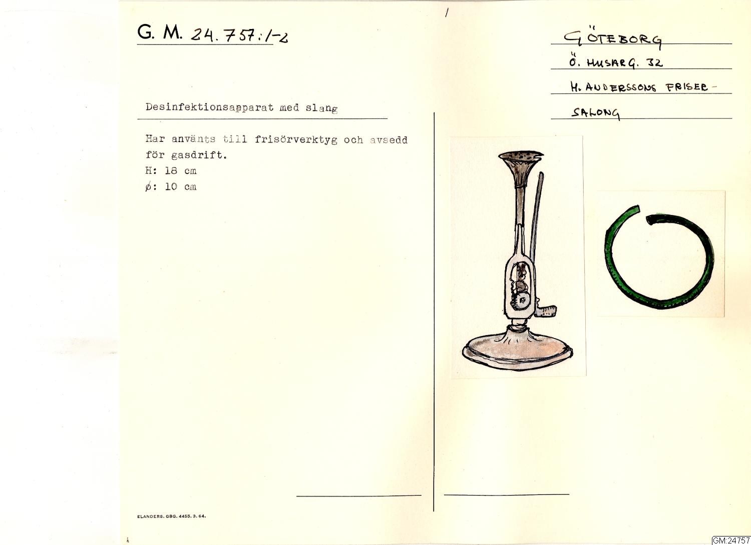 • Desinfektionsapparat bestående av brännare och gummislang.