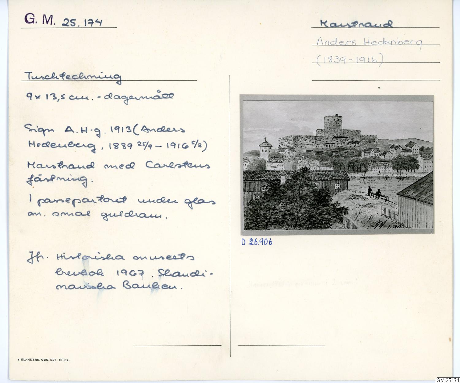 • Akvarellerad bläckteckning som frankerats och skickats som brevkort från konstnären Anders Hedenberg till Henrik Löwenadler.