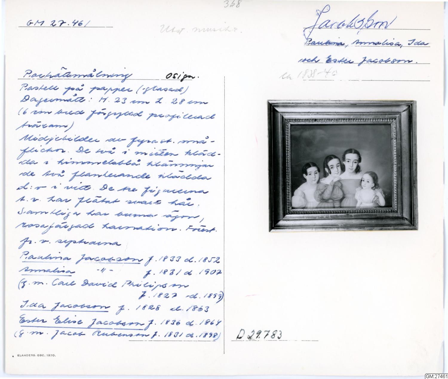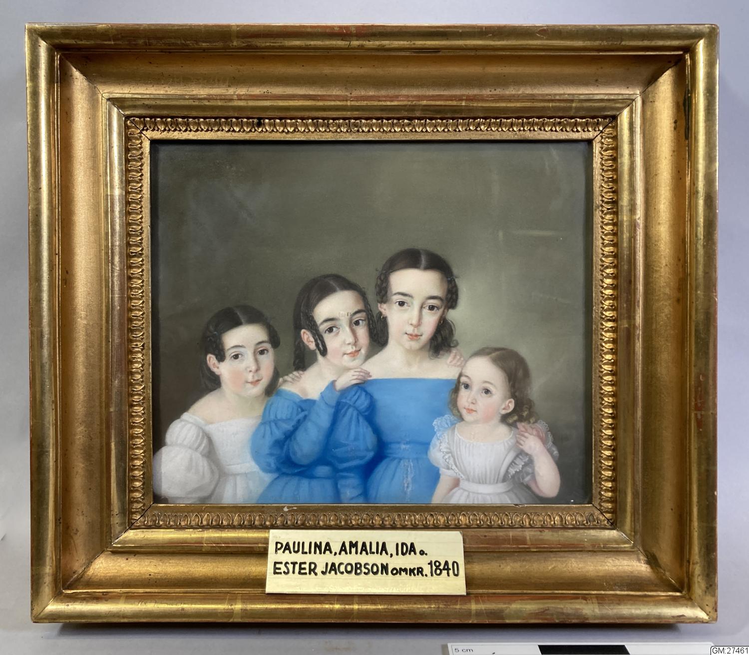 Pastell föreställande Paula, Amalia, Ida, Ester Jacobson, omkring 1840.