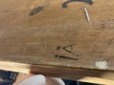 Rikt utsirad spegel med krön och detaljer i pastellage, matt och glansförgylld. Krönets medaljongens figur är klippt i papper och klistrad mot matt blåmålad botten. Baksidan stämplad I.Å. samt Stockholms hallstämpel 1786. Glas troligen sekundärt men kan innehålla kvicksilver/2025-12-02 Anna Billing Wetterlundh.