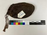 Tre knappar med ram och baksida i metall med blåvit dekor av blyertsteckning och vattenfärg under glas. :1 stående figur :2 kentaur :3 bevingad figur med byst Dessutom en liten tygpåse av brunt sidentyg, troligen avsedd att förvara knapparna i.