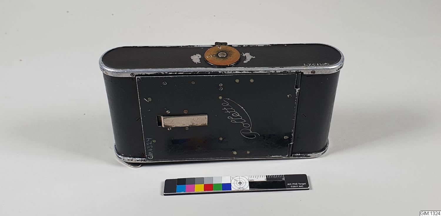 • Småbildskamera - bälgkamra. Kameran har stöd för och trådutlösare. Avståndet regleras genom att bälgen skjuts ut eller in.