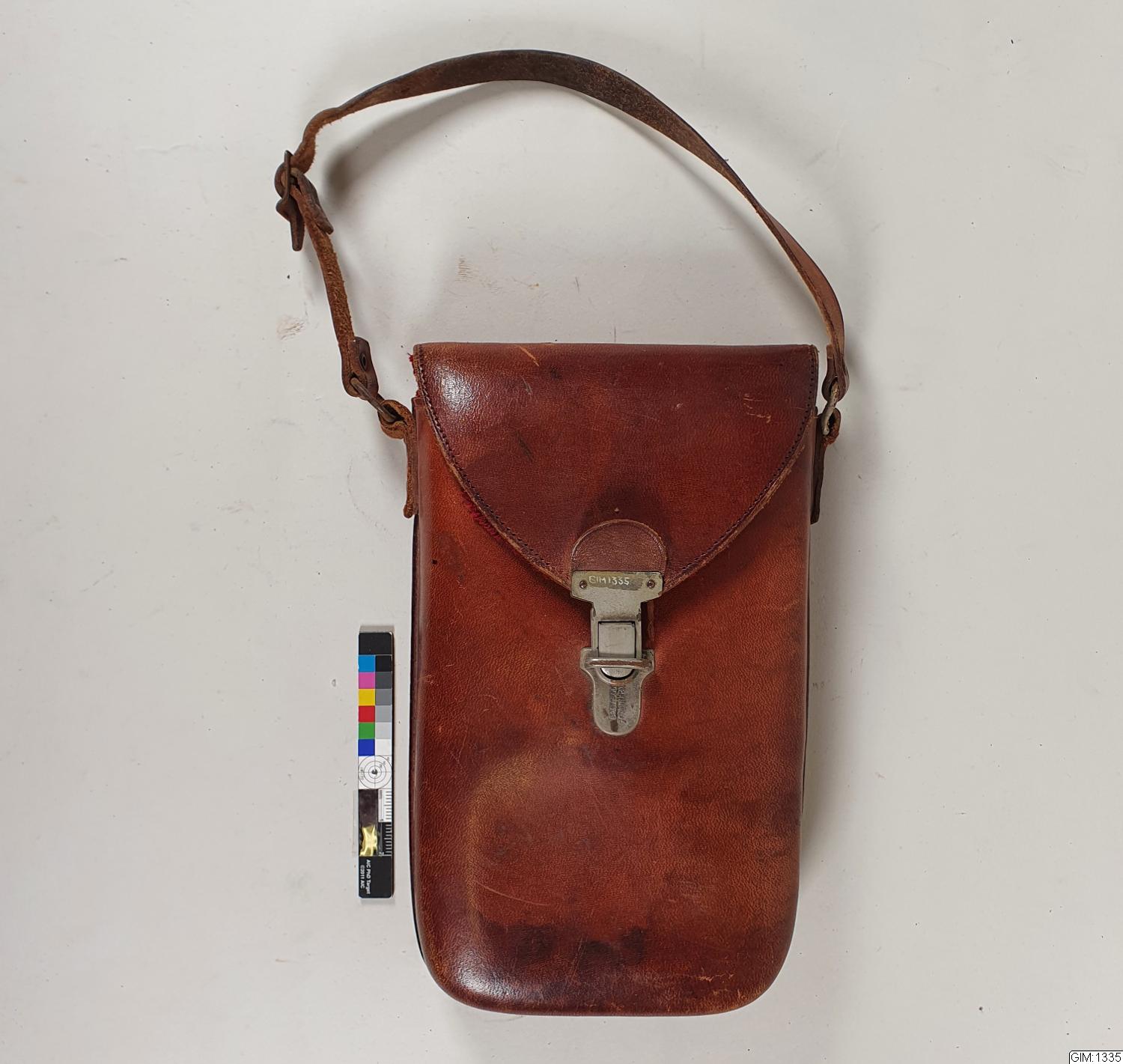 • Läderväska med handtag.