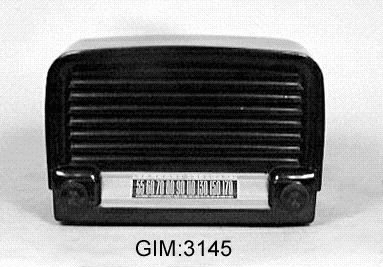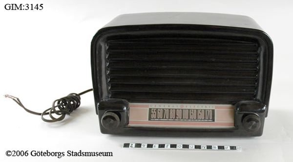 • Rörbestyckad mottagare. MV. Brunt bakelitchassie. Stationsskala i plast. Bakelitreglage. Högtalare på front. Nätsladd. Skador: repa på ovansida.