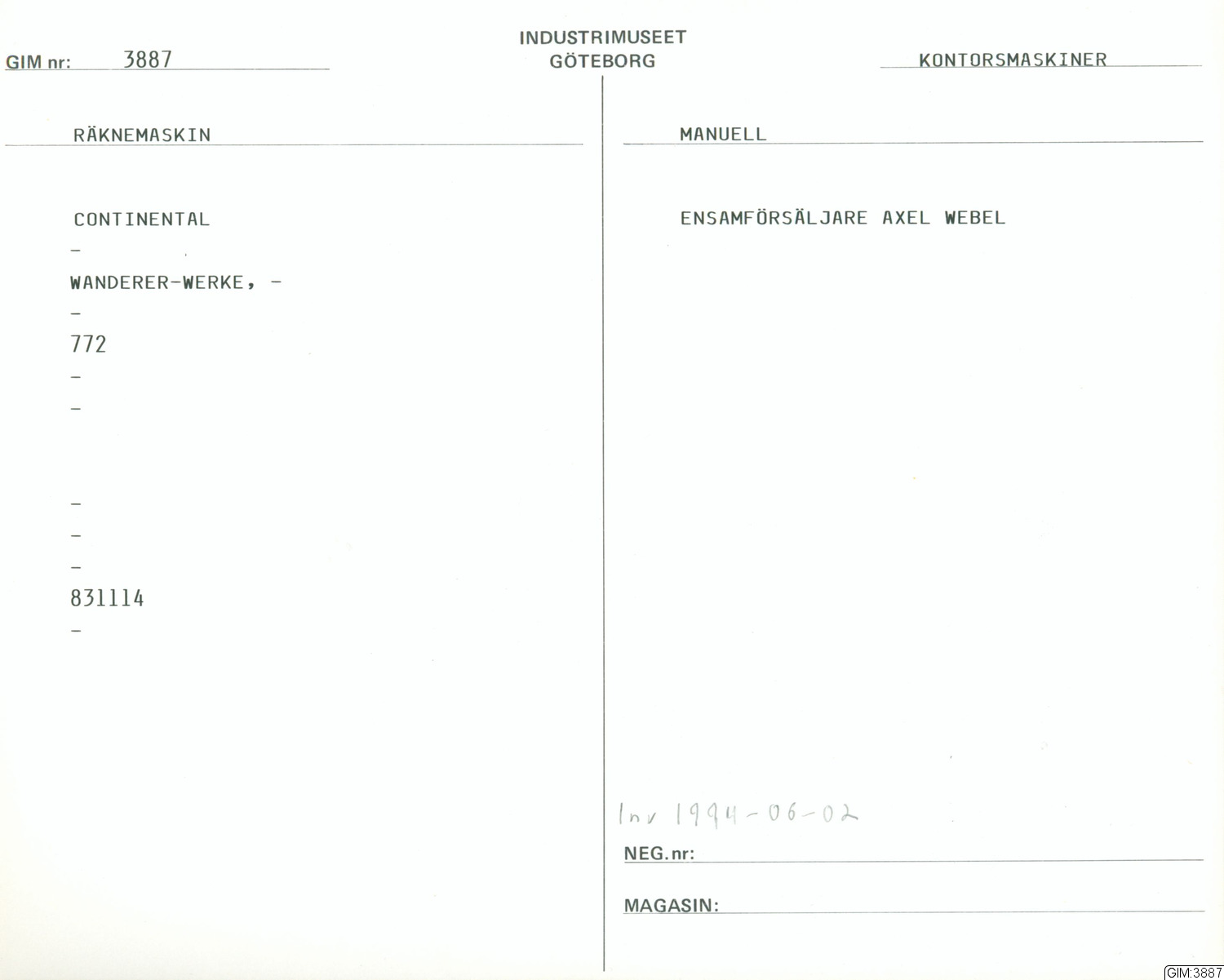 • Manuell räknemaskin-ensamförsäljare Axel Webel