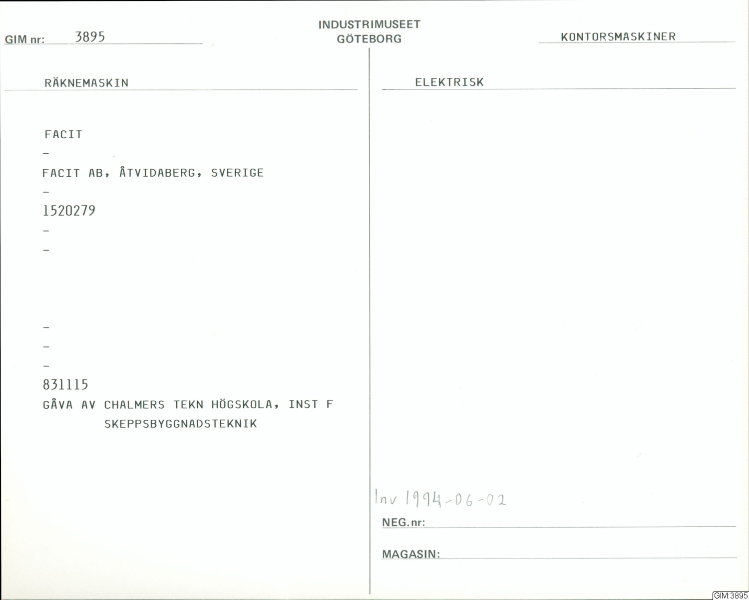 • Tillverkad av Facit AB.