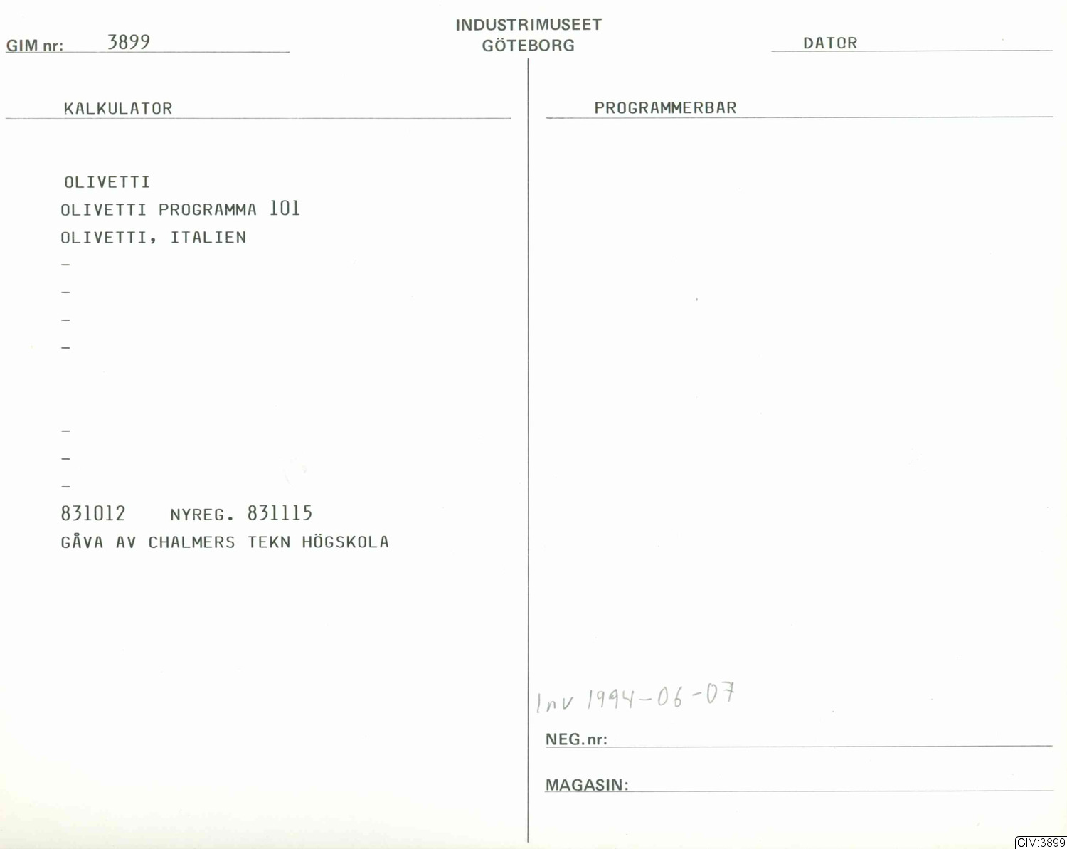 • Förvärvad 1983-10-12 av Chalmers Tekniska Högskola.