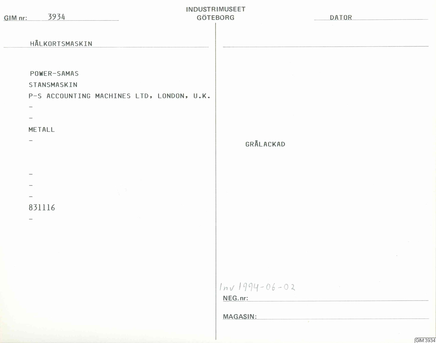 • Power Samas-stansmaskin