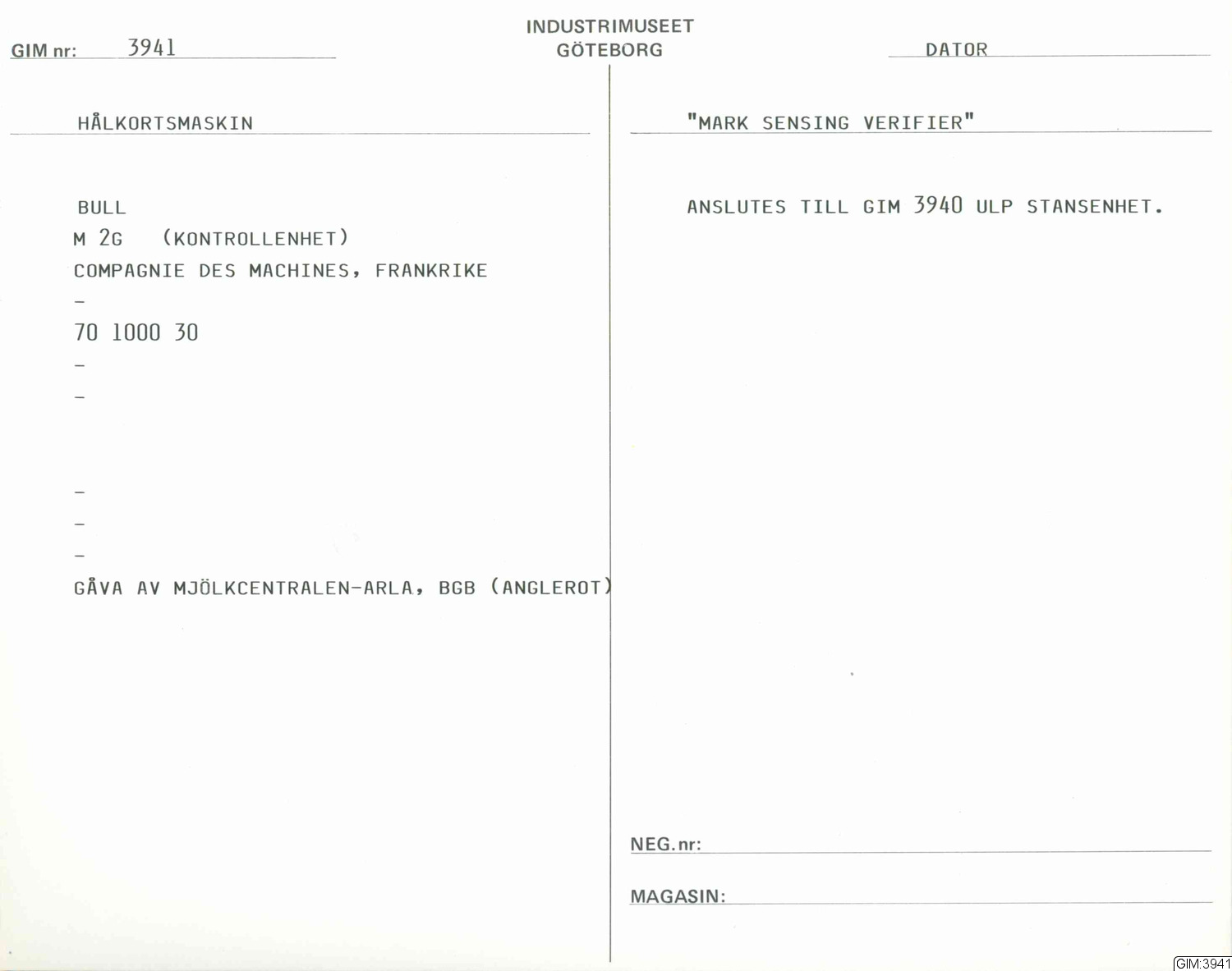 • Kontroll enhet " Mark Sensing Verifier ". Ansluten till GIM 3940 ULP -stansenhet.