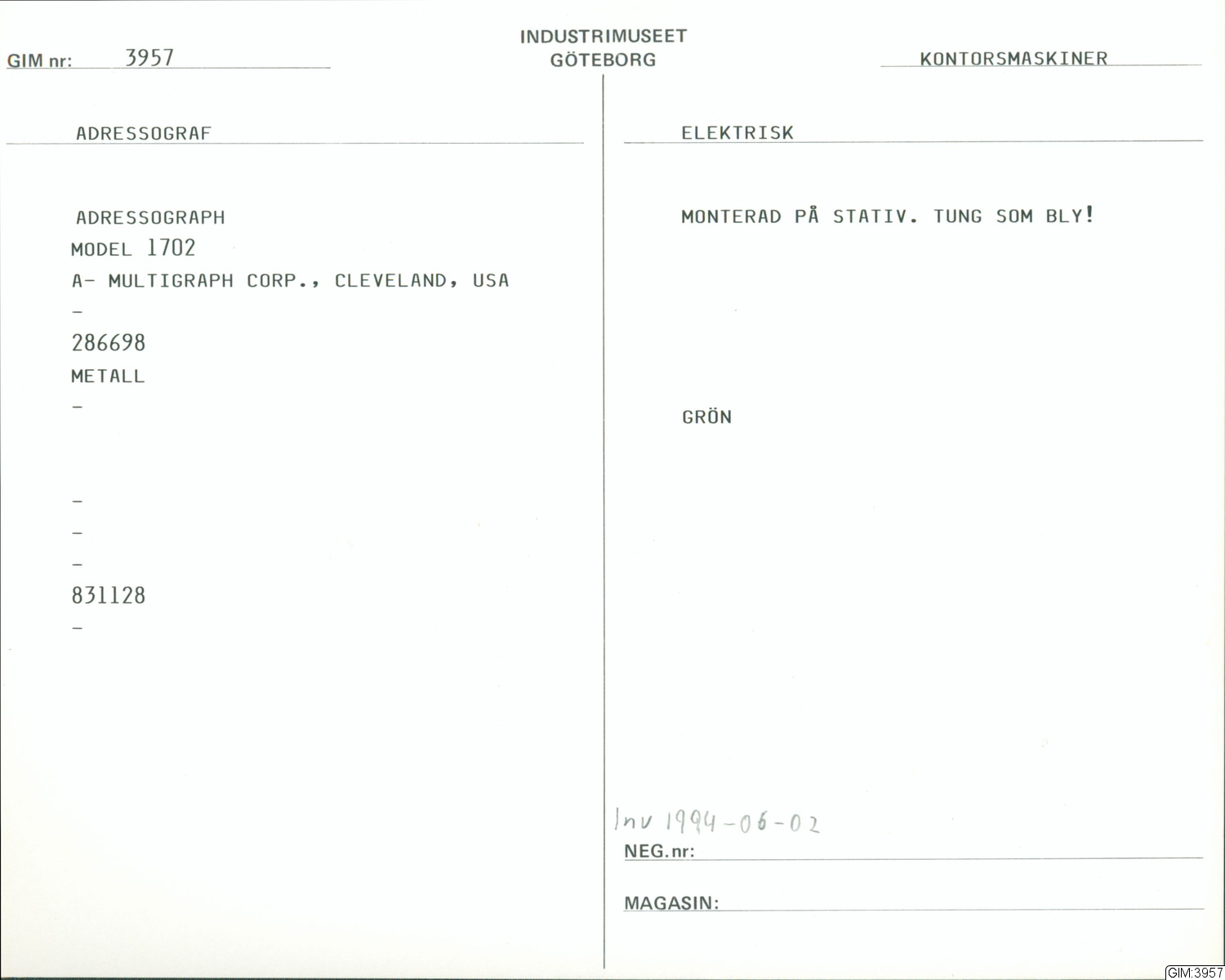 • Adressograph model 1702/286698