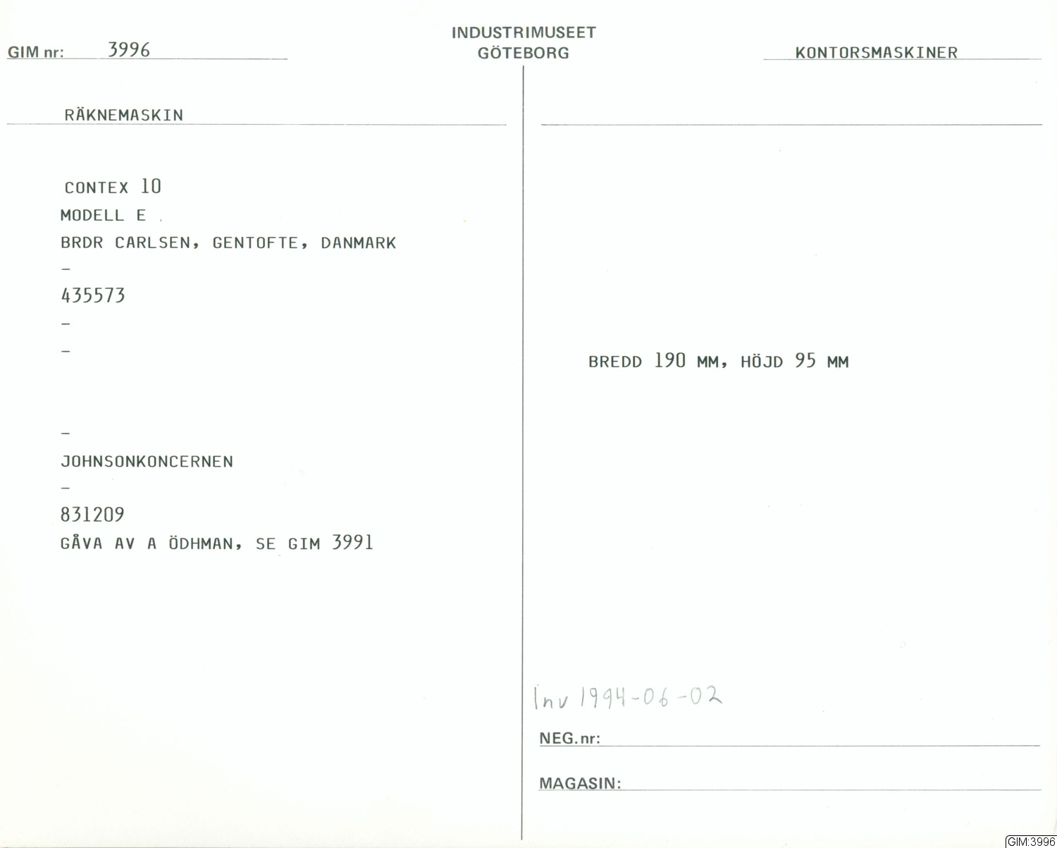 • Förvärvad 1983-12-09 av Ödhman, Arvid, Johnsonkoncernen.
