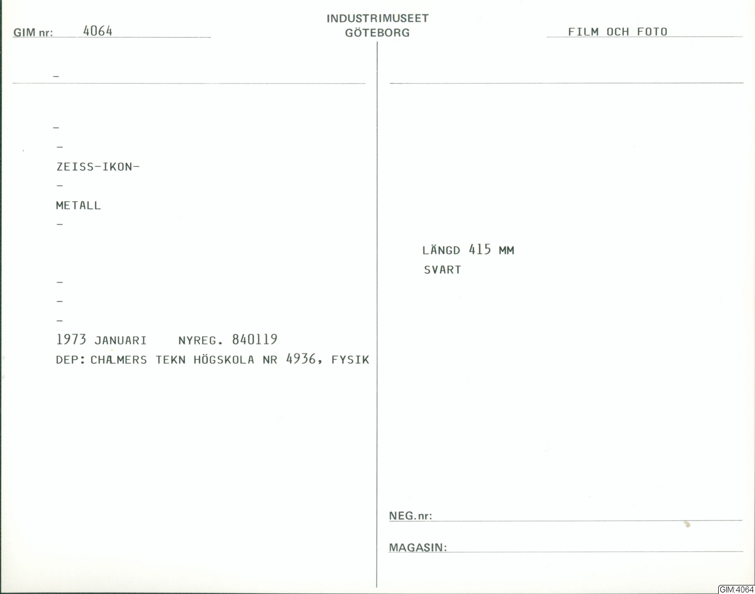 • Förvärvad 1973-01 av Chalmers Tekniska Högskola, Fysikavdelningen.