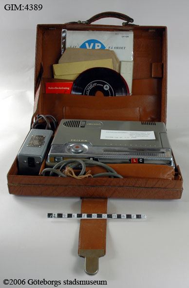 • Edison VP= Världprodukt i portföljformat, innehåller dessutom ett flertal plastskivor där tal är inspelat samt en bruksanvisning och talmikrofon.