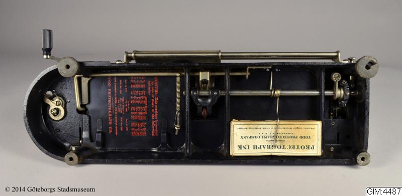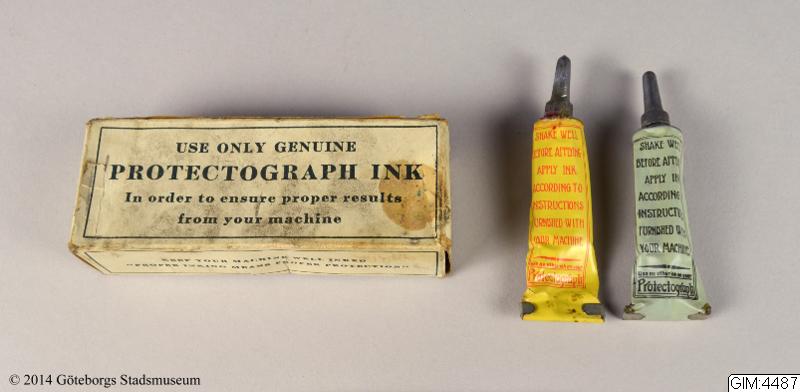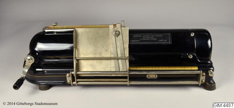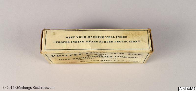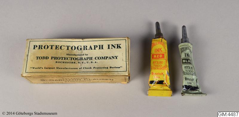 • Checkstämplingsmaskin tillverkad av Todd Protectograph Co. Gåva till Industrimuseet 1984.