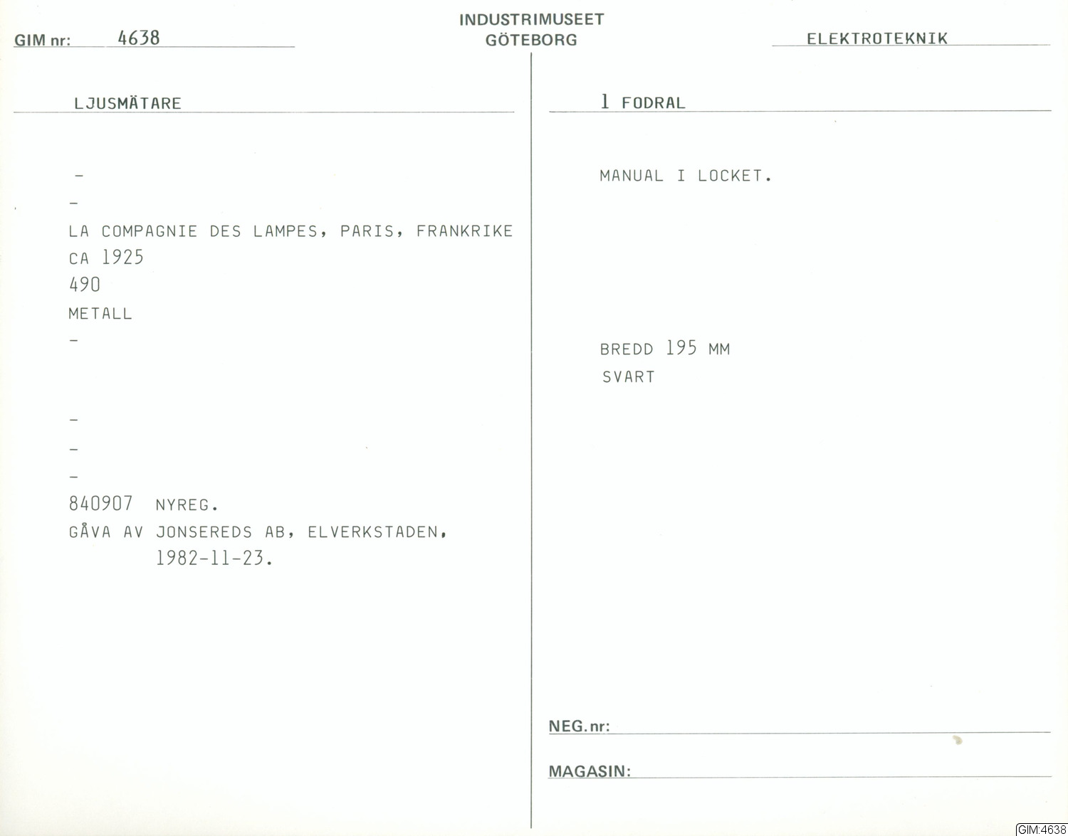 • Ljusmätaren är svartmålad. Manual finns i locket.