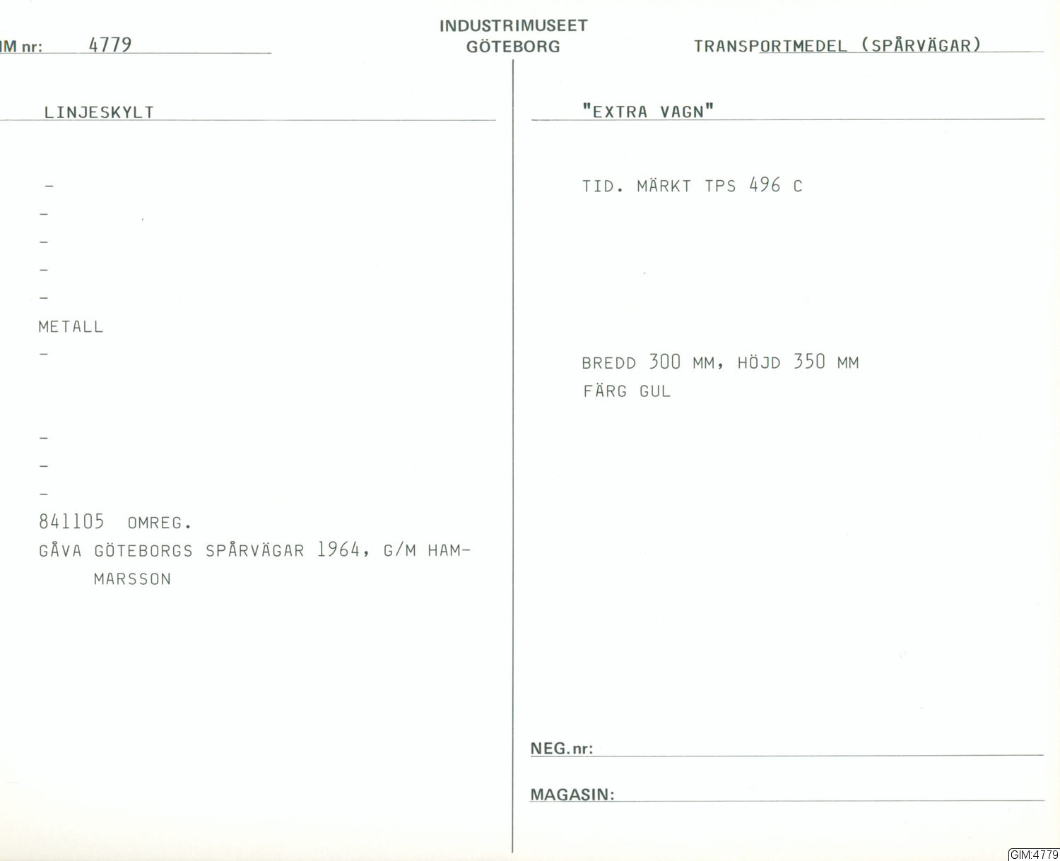 • Gåva från Göteborgs Spårvägar genom Herr Hammarsson.