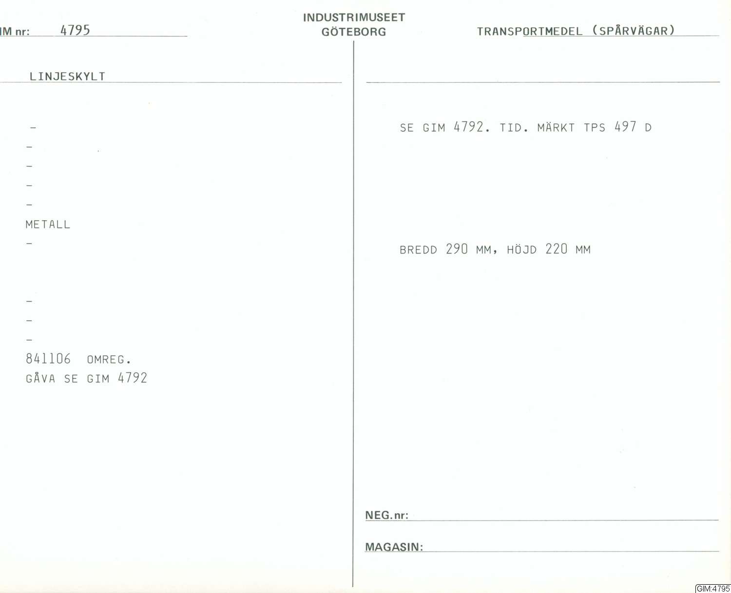 • Gåva från Göteborgs Spårvägar genom Herr Hammarsson.