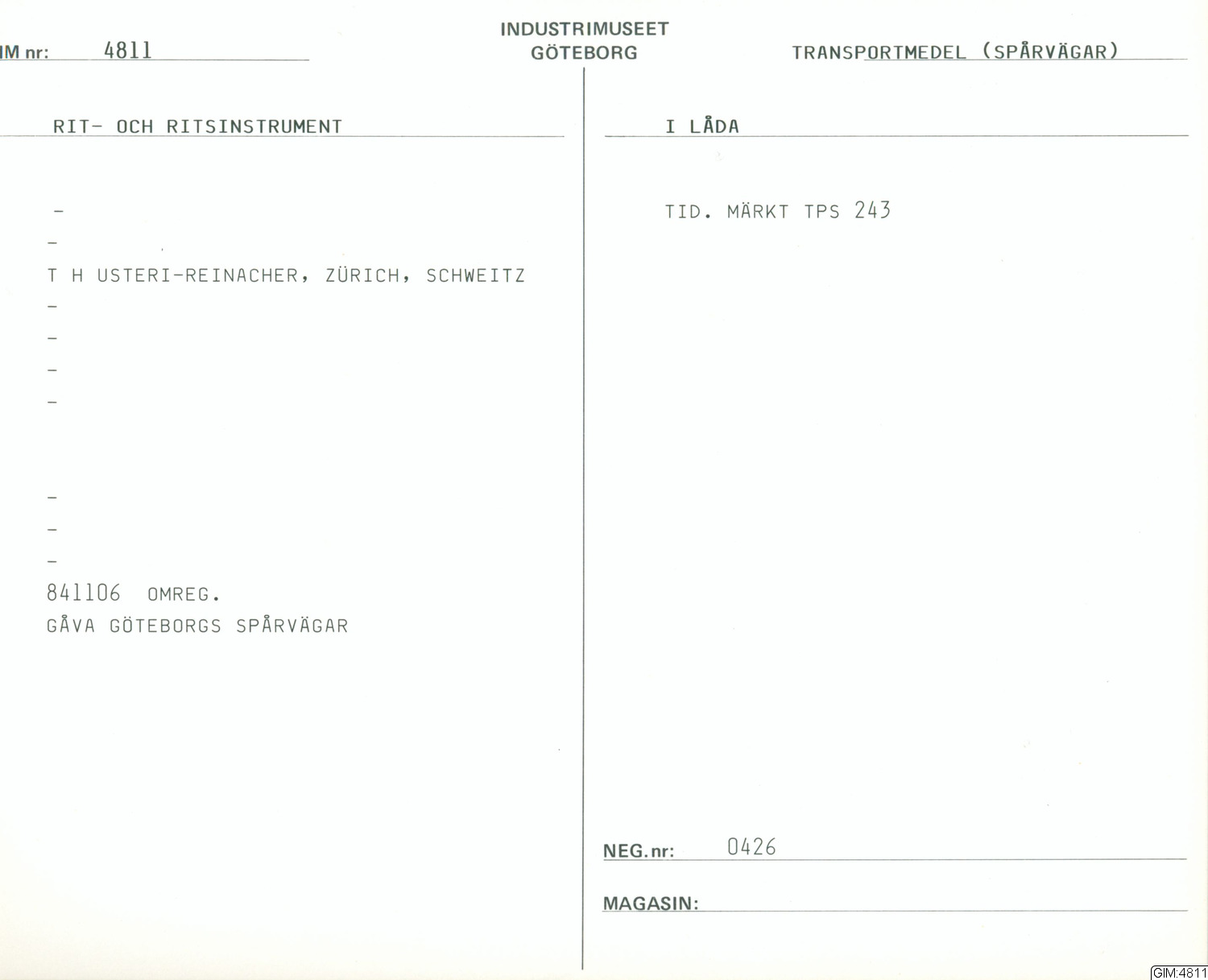 • Har använts av Göteborgs Spårvägar, kontoret.#Märkt av G.B 1962-06-07