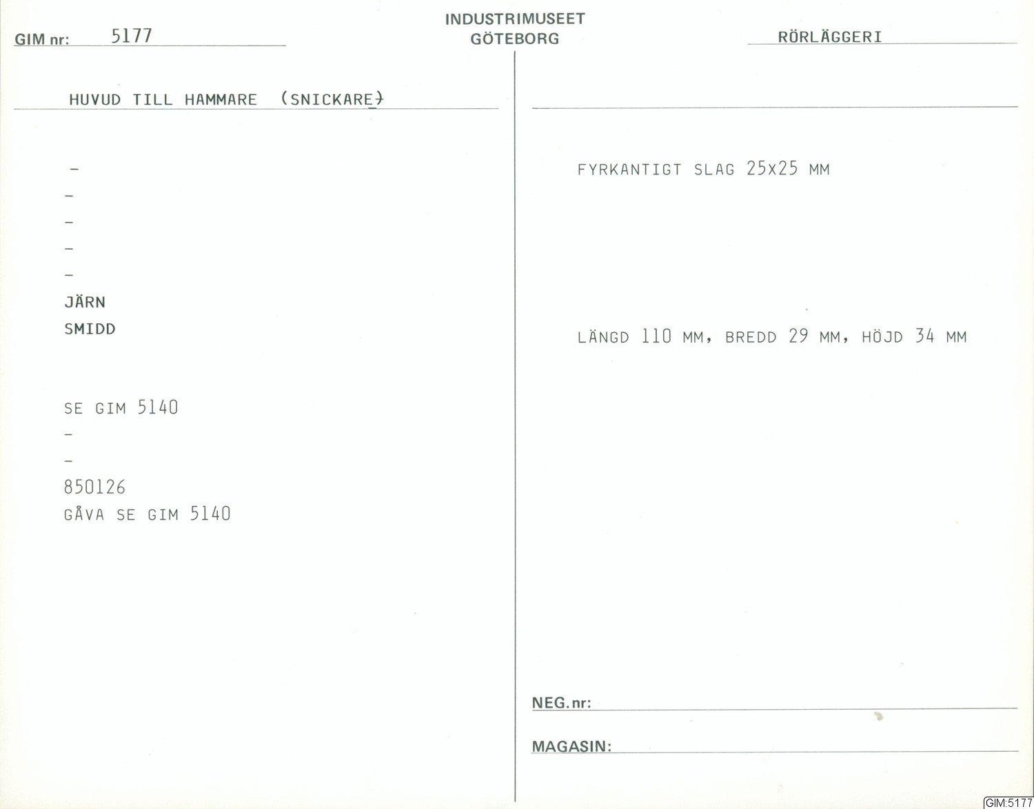 • Smidd järnhammare-huvudet till en hammare. Fyrkantigt slag 25X25 mm