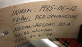 Förvärvad 1985-06-12 av Johansson, Per.