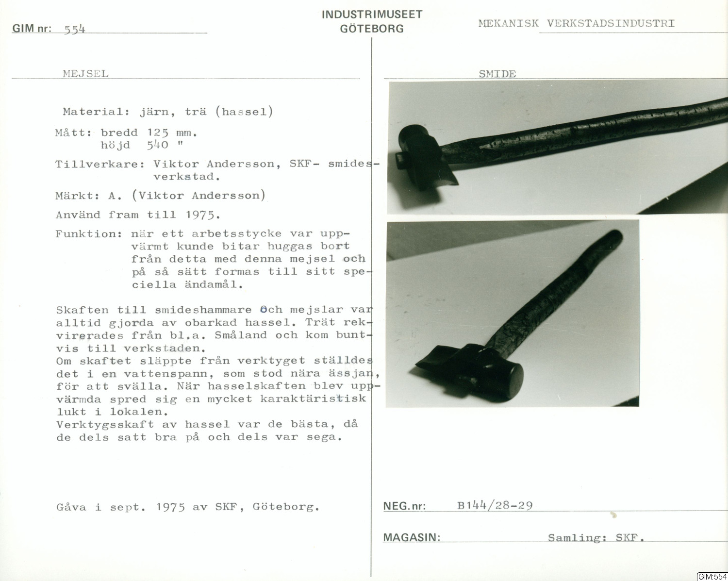 • Märkt: A skaften till hammare och mejslar var alltid av hassel; mer beskrivning finns i manuell katalog.