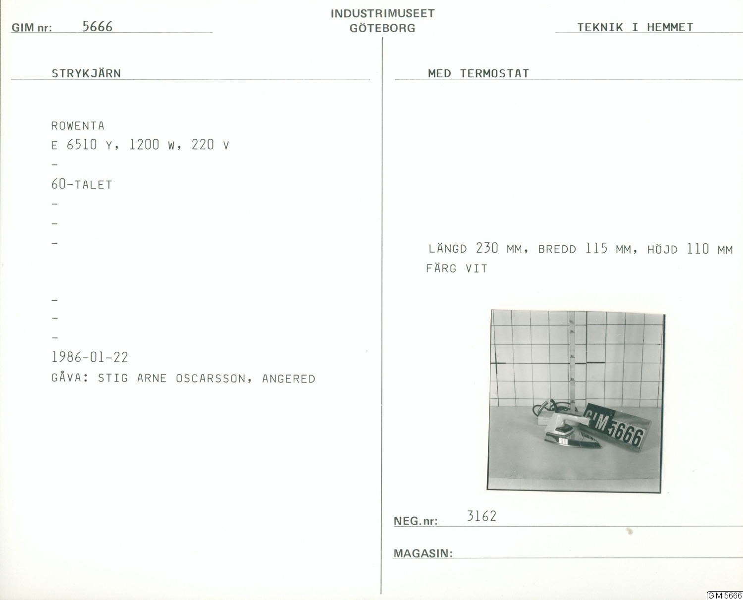 • Termostatstrykjärn 1200 W, 220 V. Strykjärnet är vitt.