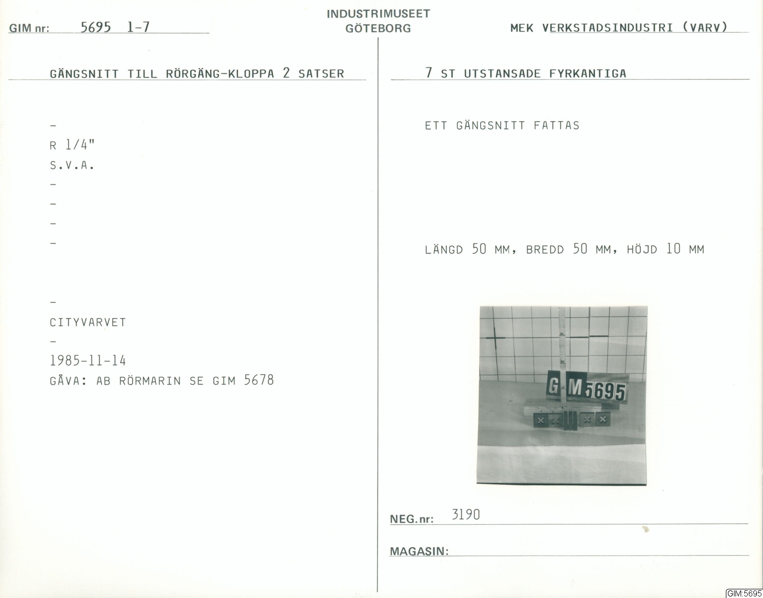 • 2 satser utstansade fyrkantiga gängsnitt till rörgängkloppa. 1 gängsnitt fattas.