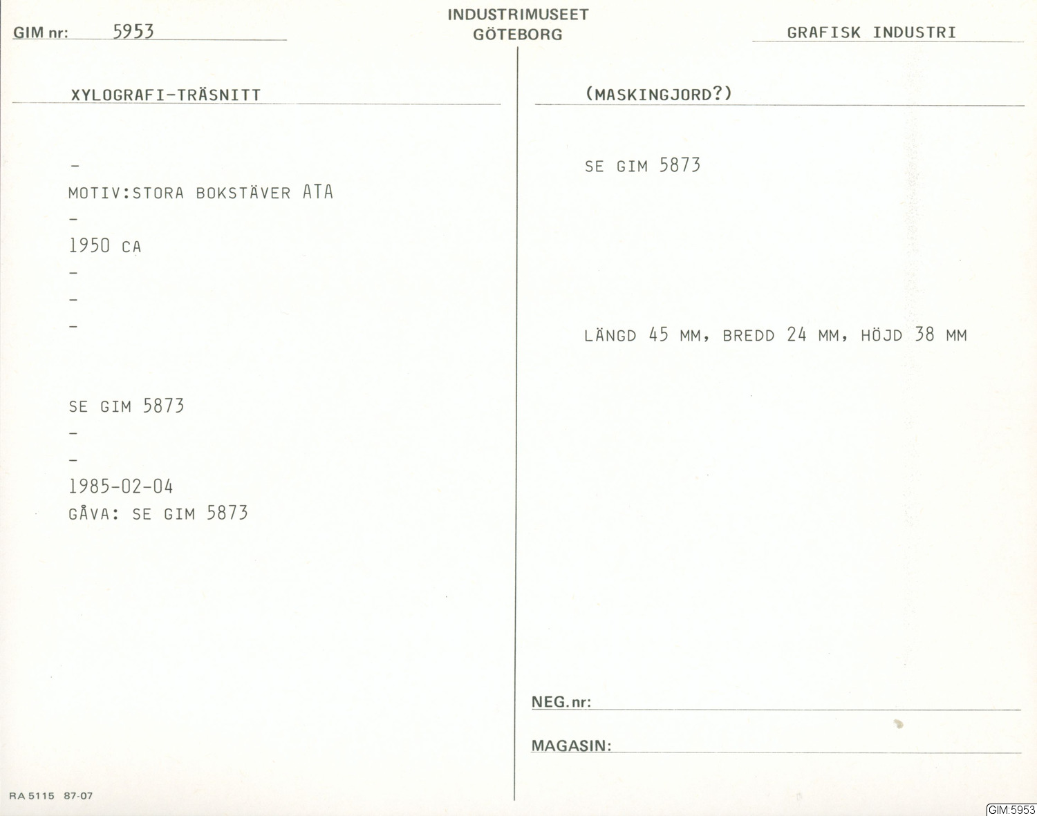 • träsnitt=xylografi Motiv: Stora bokstäver ATA