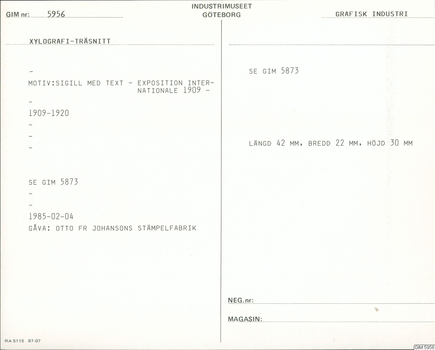 | Källa <presOrganization> | Göteborgs stadsmuseum |