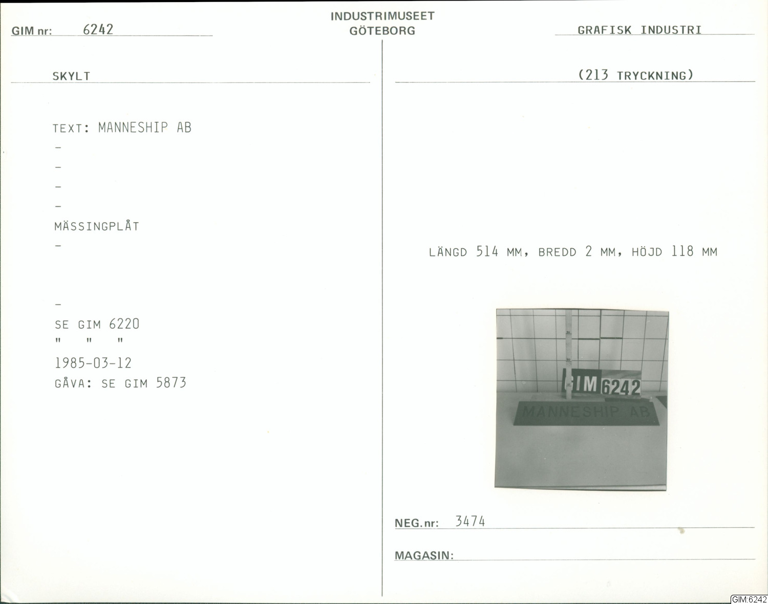 • Förvärvad 1985-03-12 av Otto Fr. Johanssons Stämpelfabrik & gravyranstalt.