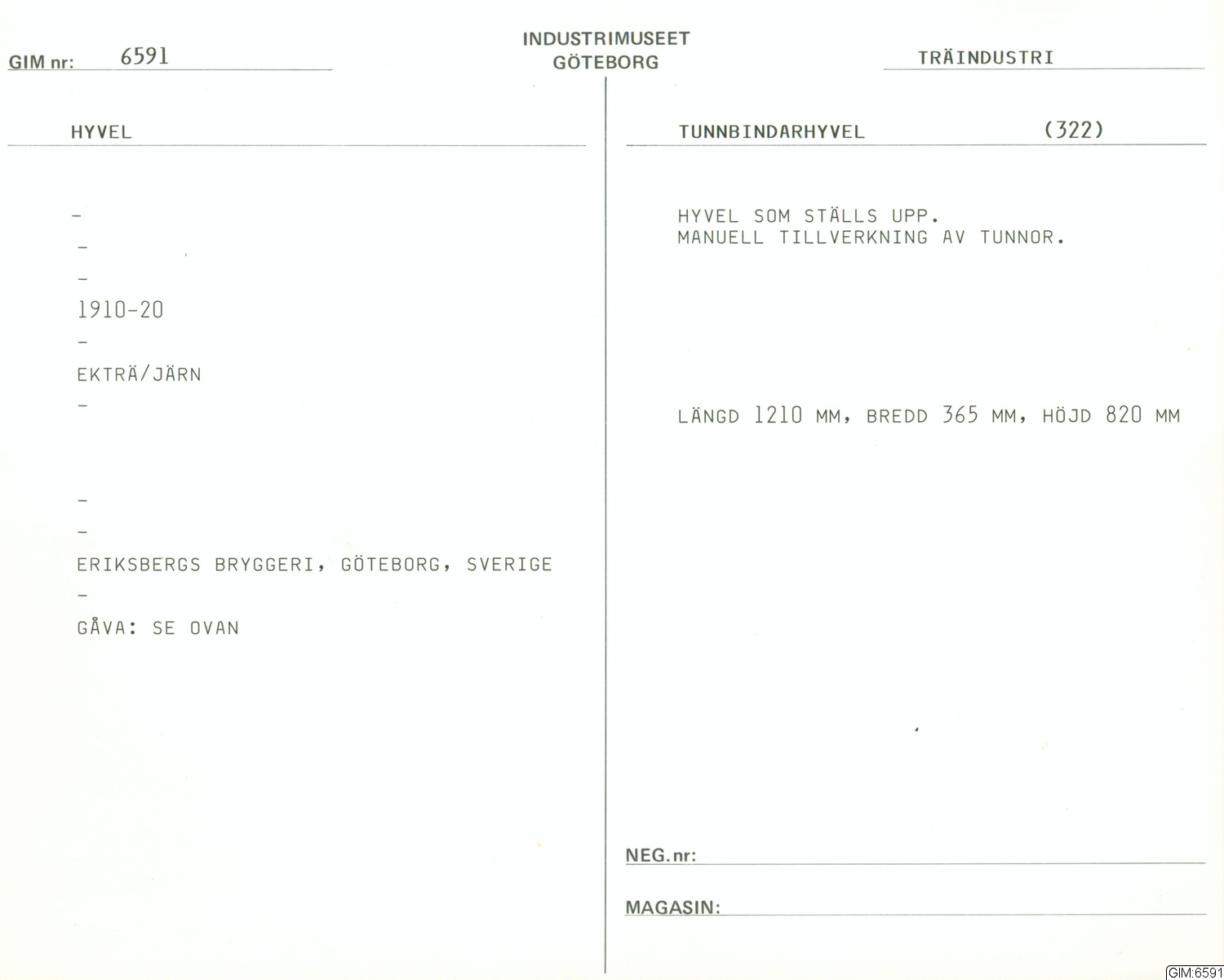• Hyvel som ställs upp. För manuell tillverkning av tunnor.